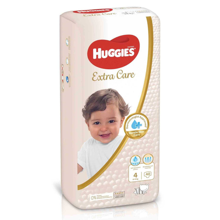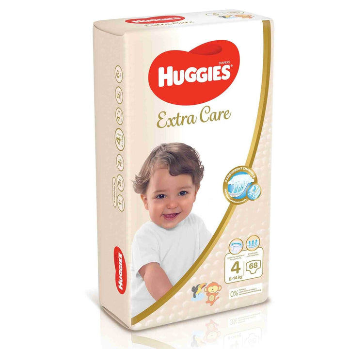 Huggies Extra Care Diapers are designed to provide superior comfort and protection for your baby. Featuring a soft, breathable outer layer and a unique absorbent core, these diapers help keep your baby dry and comfortable for longer periods. The gentle, hypoallergenic materials are ideal for sensitive skin, reducing the risk of irritation and rashes. With a snug fit and flexible design, Huggies Extra Care Diapers allow for easy movement, making them perfect for active babies. Additionally, the wetness indicator lets parents know when it's time for a change, ensuring your little one stays happy and dry throughout the day.