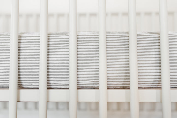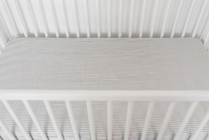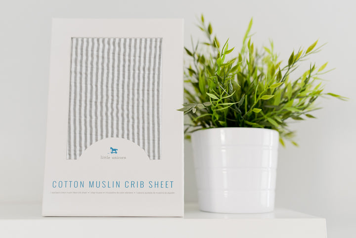 Little Unicorn Cotton Muslin Crib Sheet Grey Stripe
