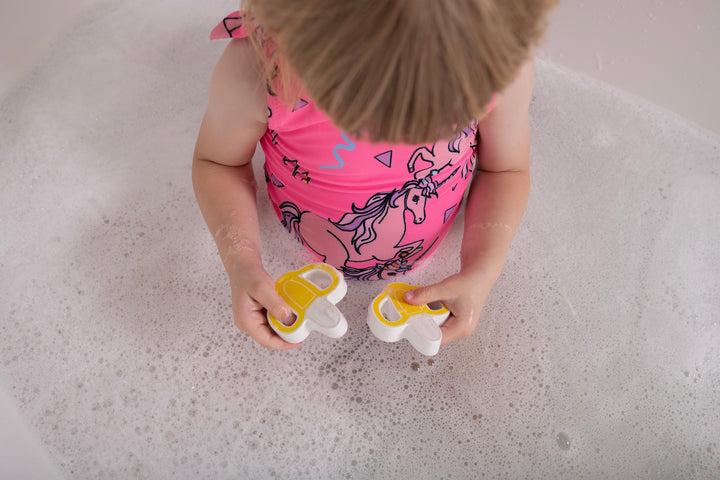 Splish, splash! This fun bathtime toy set includes 2 sinking and 2 floating bath toys. The bright bananas and leaves either sink or float when you throw them in the water, teaching children about the weight of items.