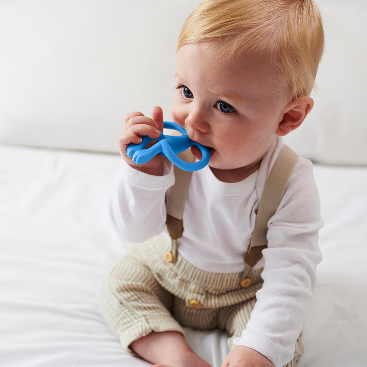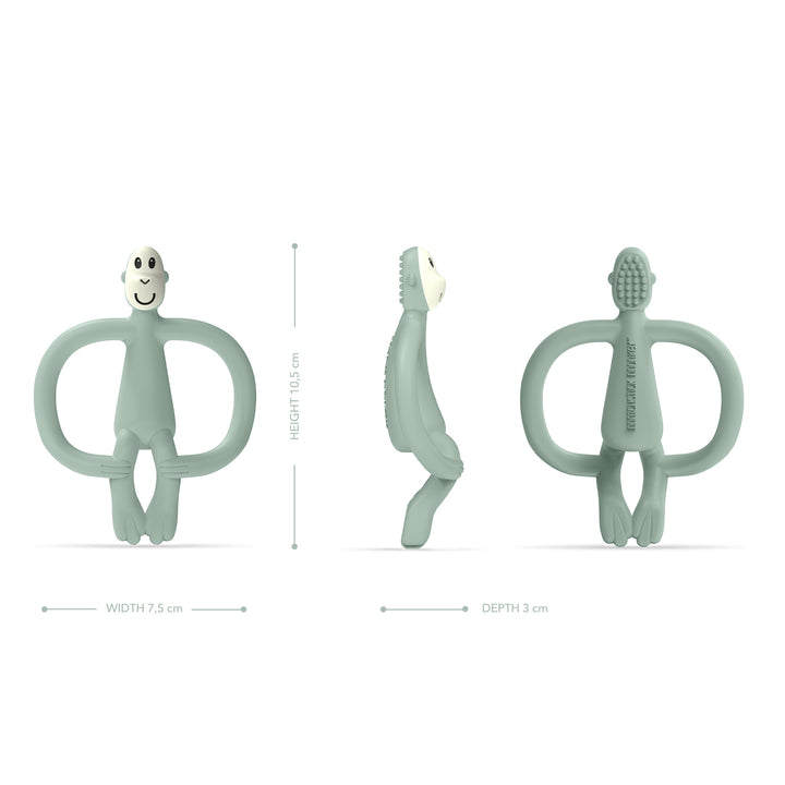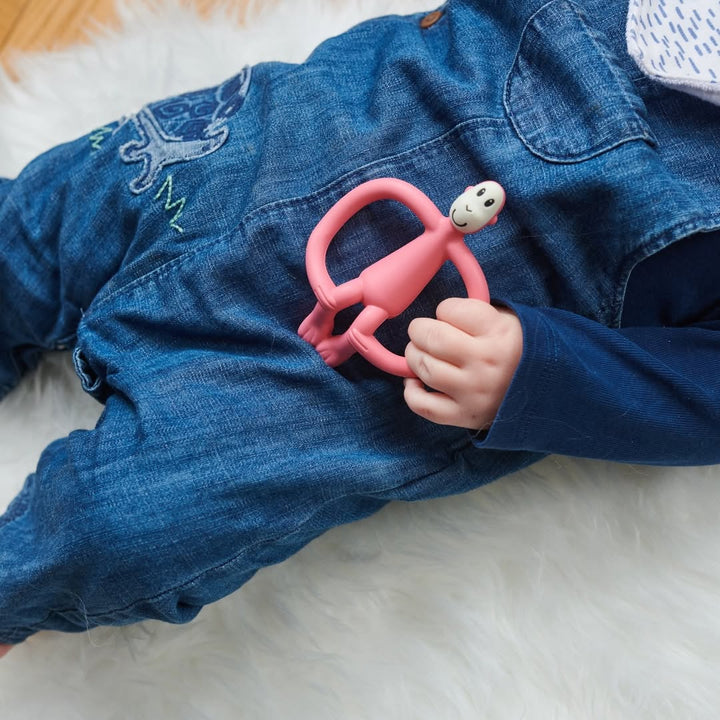 The Matchstick Monkey Monkey Teethers are innovative silicone teethers perfect for tiny little hands, providing soothing relief to aching gums. The added BioCote® Antimicrobial Protection helps protect the teether against a wide range of microbes, keeping germs at bay. Our teethers will stay fresher and cleaner for longer. With clever bumps on the back of the monkey’s head, applying teething products and massaging hard to reach molars is easy for parents. Easy-to-grip "arms" help develop fine motor skills and enable little ones to self-soothe. Simple to clean in the dishwasher or sterilizer, it can be placed in the fridge for added pain-relief. Bright and eye-catching, it can be used as a pre-training toothbrush to encourage early brushing.