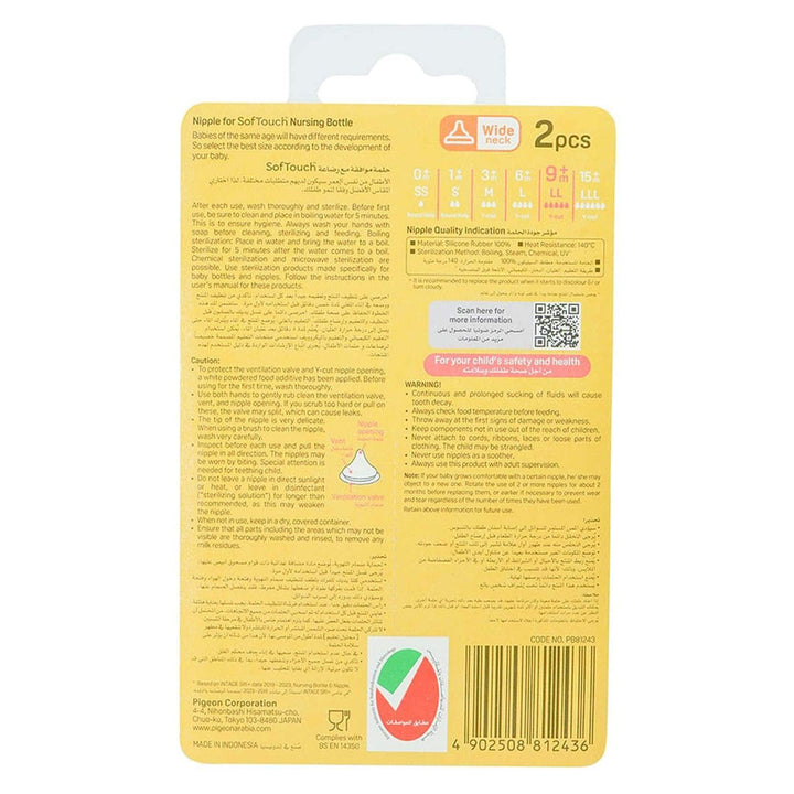 The Pigeon SofTouch Wide Neck Bottle Y-Cut Nipples LL 2 PCS are designed to provide a natural and comfortable feeding experience for your baby. The wide neck design makes it easy to clean and fill the bottle, while the Y-cut nipples are perfect for thick liquids or faster flow rates.