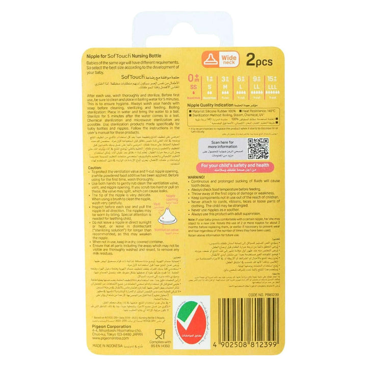 With the Pigeon SofTouch Wide Neck Bottle Round Hole Nipples SS 2 PCS, you can feel confident that your baby is getting the nutrition they need in a comfortable and safe way. These nipples are a great choice for parents who want to provide their baby with a natural feeding experience.