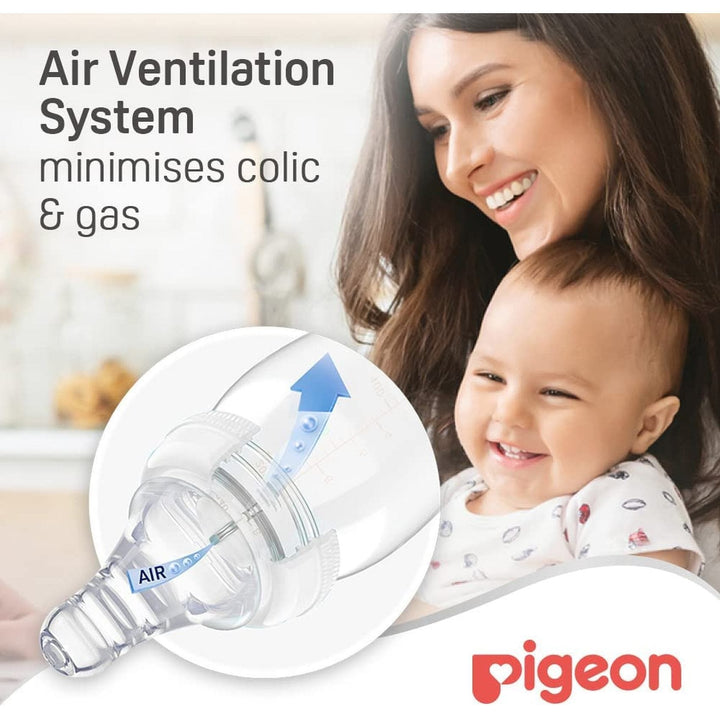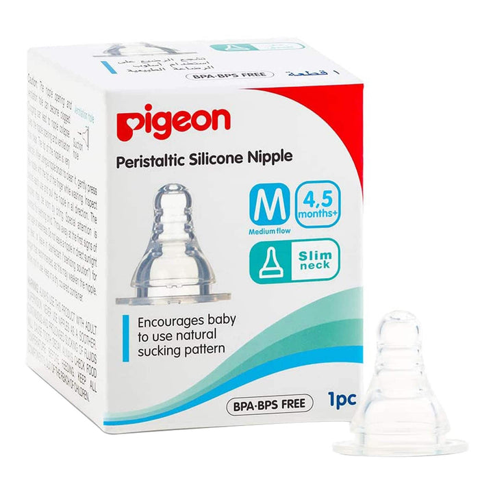 HOME /Bottles & Nipples / Pigeon SofTouch Peristaltic Plus Silicone Teat 01853 Medium Clear