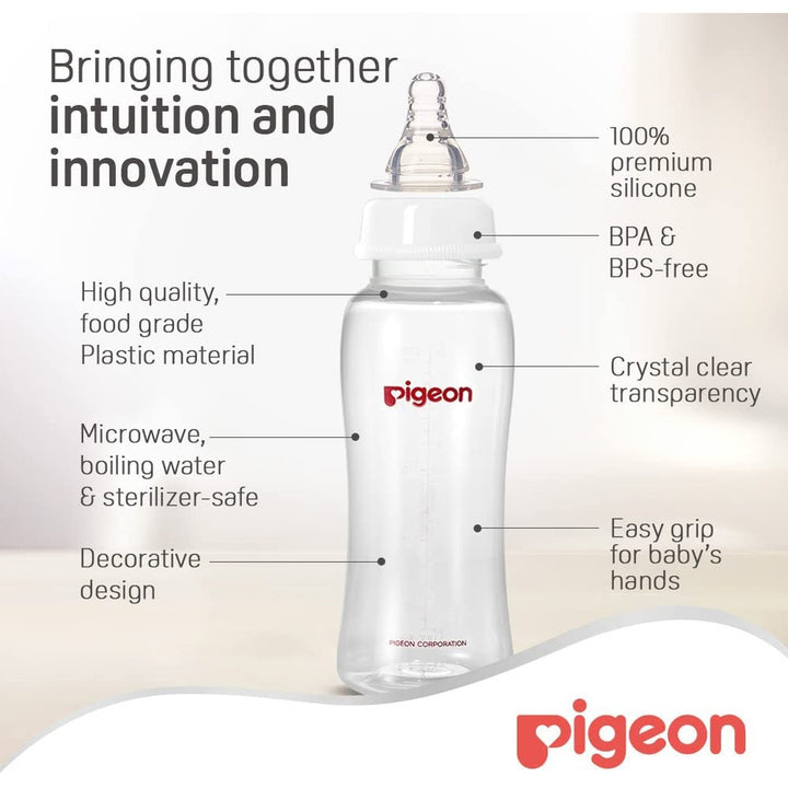 The Pigeon Streamline Bottle 78274 Clear 250ml is a convenient and stylish bottle for your baby's feeding needs.