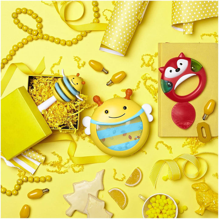 Includes Bee shaker drum, Fox tambourine, Bee clacker