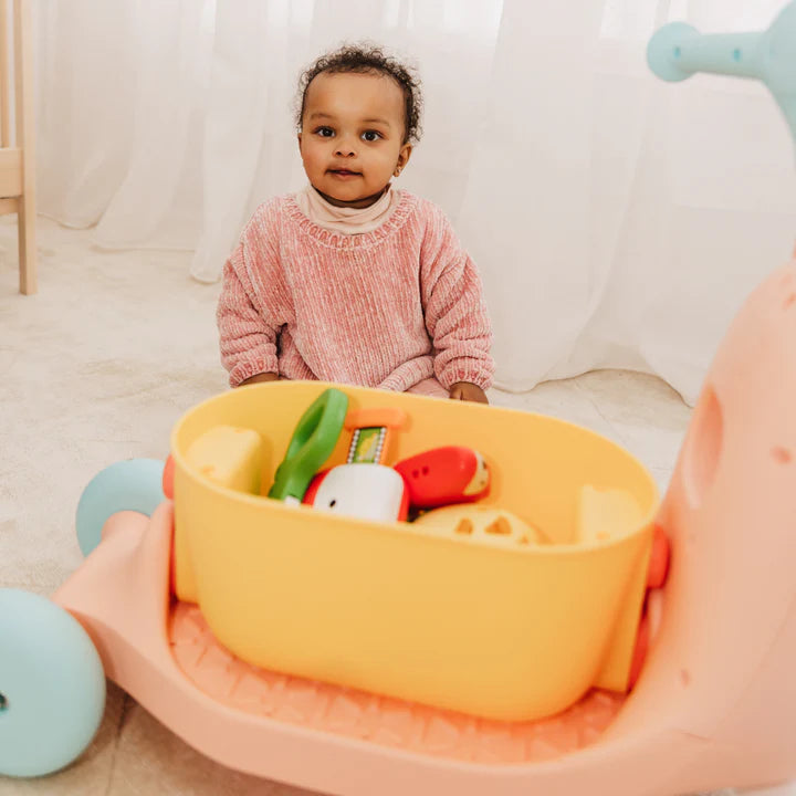 Stage 2: Converts into a seated ride-on for toddlers learning foot-to-floor movement