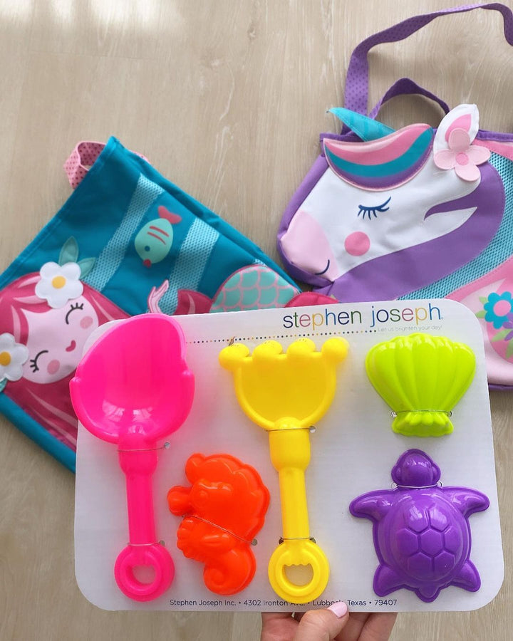 The only thing your toddler will find more exciting than a trip to the beach, lake, pool, or even a day at the park is when they can carry all their own seaside accessories in a Stephen Joseph Beach Tote. It’s already packed with things to play with - five exciting tools for building the perfect sandcastles. Your child will be so happy digging, sifting and making shapes in the sand, Mom might even get a chance to sunbathe in peace.
