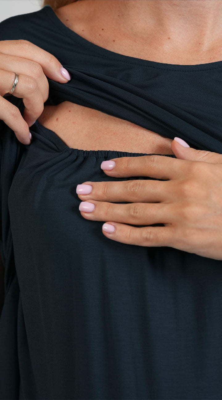 Crafted from soft, breathable cotton with just the right amount of stretch, it’s designed to adapt to your changing body. The hidden lift-up panel allows for easy, one-handed breastfeeding or pumping—wherever you are.