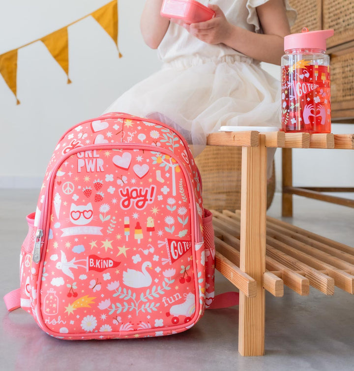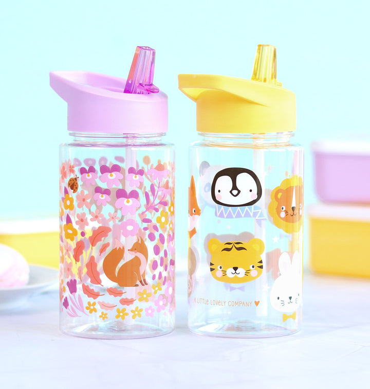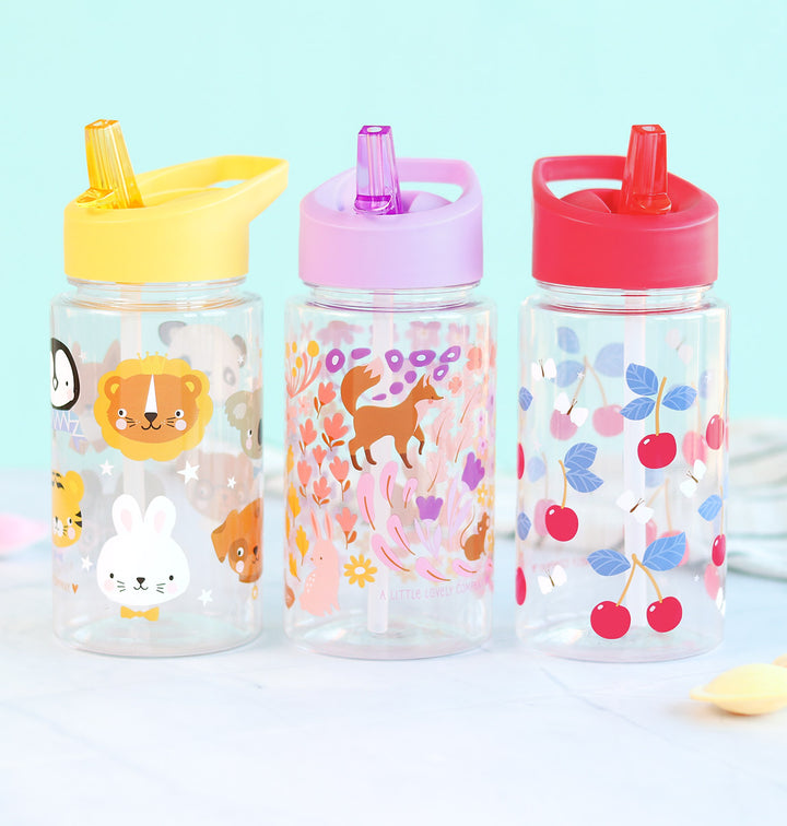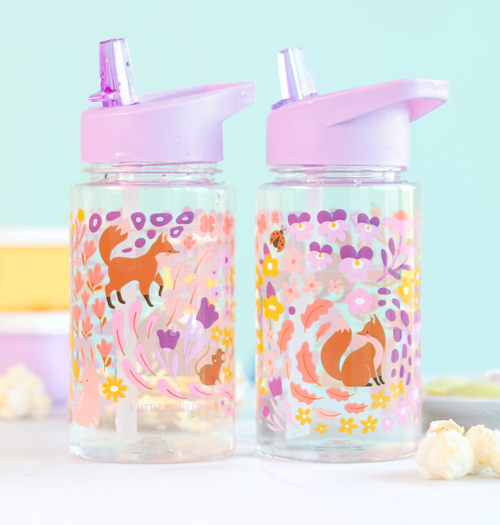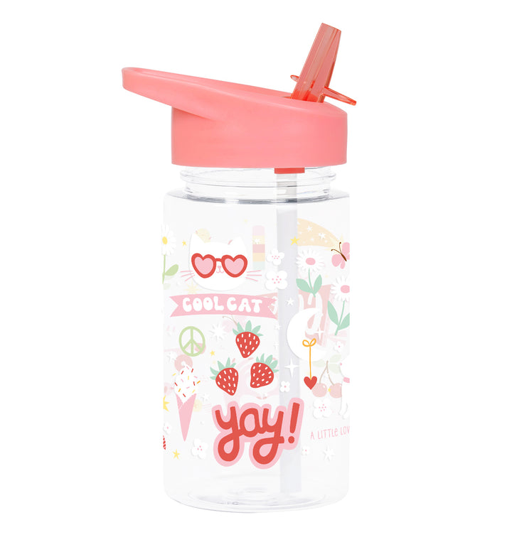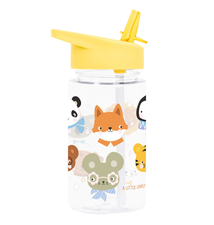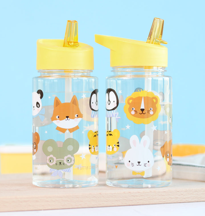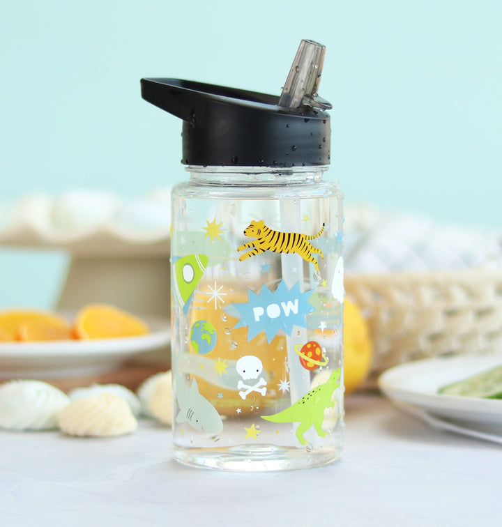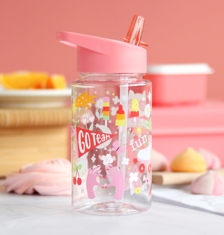 Transparent drink bottle is ideal to take to school. The bottle for kids has a capacity of 450 ml, is made of Tritan and is leak-proof. Complete the school set with a matching pencil case, lunch box and backpack with the same print.