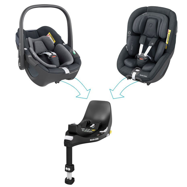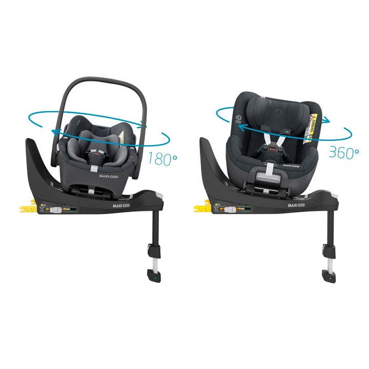 Maxi-Cosi has designed a new innovative family of car seats, built for long-term use. The unique 360 Family is the next generation rotating car seat system, consisting of a rotating FamilyFix 360 base and compatible Pebble 360 & Pearl 360 car seats, made to carry your baby from newborn up to 4 years old. The Maxi-Cosi FamilyFix 360 base allows quick, easy installation of the Maxi-Cosi Pebble 360 and Maxi-Cosi Pearl 360 car seats. With purchasing the FamilyFix 360 you buy a quick and easy to use car seat base. FamilyFix 360 base meets the highest and lastest i-size standards, thanks to rearward-facing travel capability of up to 4 years. This ensures extra head and neck protection for your child. Visual indicators and audio feedback on the base notify you when your car seat is correctly installed and the TravelSafe Rotation Control gives peace of mind knowing your baby travels in the rearward-facing up to approx. The Maxi-Cosi FamilyFix 360 can be installed easily and quick using it’s ISOFIX connectors and support leg. Once you have installed the base you can perfectly install your Maxi-Cosi Pebble 360 and Maxi-Cosi Pearl 360 car seats with Click & Go installation. FlexiSpin technology makes the base rotate in any reclined position. Thanks to the 360 rotation handle on the base, the 360° car seats can be rotated smoothly and easily using only one hand - perfect for busy parents with their hands full. PRODUCT USPS PLUS: The smart built-in rotational system enables compatible car seats to be easily rotated using only one hand. PLUS: You can rotate the FamilyFix 360 base in any recline position due to the FlexiSpin technology. PLUS: Safe rearward-facing and forward-facing travels possible from birth up to 4 years. PLUS: For correct car seat installation the FamilyFix 360 base has visual indicators and audio feedback. PRODUCT FEATURES i-Size compliant, thanks to rear-facing travel capability of up to 4 years for extra head and neck protection. ISOFIX connectors and support leg provide the safest, easiest and quickest way to install a car seat. Visual indicators and audio feedback notify you when your car seat is correctly installed. Safe rearward facing and forward facing travels possible from birth up to 4 years. A smart built-in rotational system that enables compatible 360 car seats to be easily rotated using only one hand. FlexiSpin technology makes the base rotate in any reclined position. Easy Click & Go car seat installation. BRANDSTORY At Maxi-Cosi we have carried over 50 million babies home from the hospital. Our safe and comfortable car seats and pushchairs can be found on the first day of nursery, at birthday parties, park picnics, and every moment in-between. Our intuitive and innovative products help carry families happily into the future, standing by our singular promise: whatever the future carries, we carry the future.