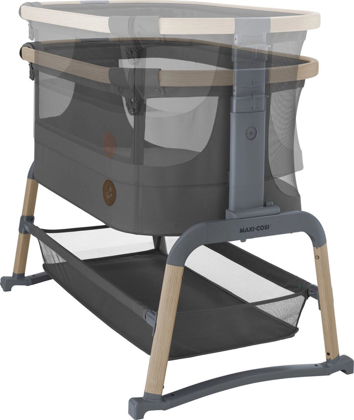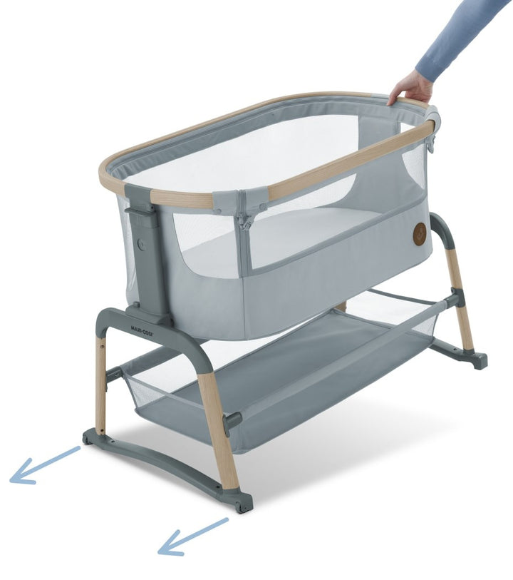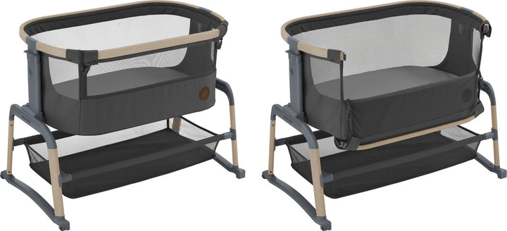 Having your newborn home, is such a special time. The Maxi-Cosi Iora Air is an extra-comfortable, soothing co-sleeper, designed to keep your baby close and deepen that special bond. A sumptuously thick mattress will provide all the comfort your little one needs. And for the more challenging nap times, a handy rocking-function will help soothe your baby back to sleep. Made with super-soft, premium, 100% recycled fabrics, the Iora Air features an all-round, breathable mesh fabric. And a large storage basket underneath ensures all your baby essentials are within reach, for around-the-clock care. WARNING: The product shall not be used before reading the instructions for use.The crib is not suitable for children who can sit or kneel or pull themselves up.