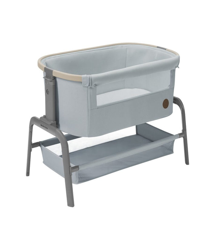 The Maxi-Cosi Iora Co-Sleeper is an elegant, adjustable bedside solution designed to keep your newborn close, comfortable, and safe. Featuring a super-comfortable mattress, five height options, four incline positions, an easy slide function, a large storage basket, and premium EcoCare 100% recycled fabrics, the Iora ensures restful sleep for both baby and parents.