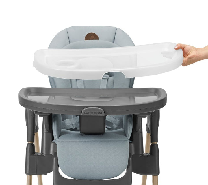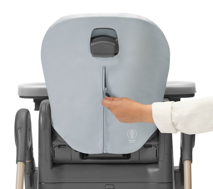 Designed with parents in mind, the Minla features a one-hand recline adjustment and a one-hand removable tray, ideal for busy moments when holding your child. The seat height can be adjusted effortlessly, and cleaning is simple thanks to water-repellent, machine-washable fabrics and a dishwasher-safe tray. After mealtime, the Minla folds into a compact shape for easy storage.