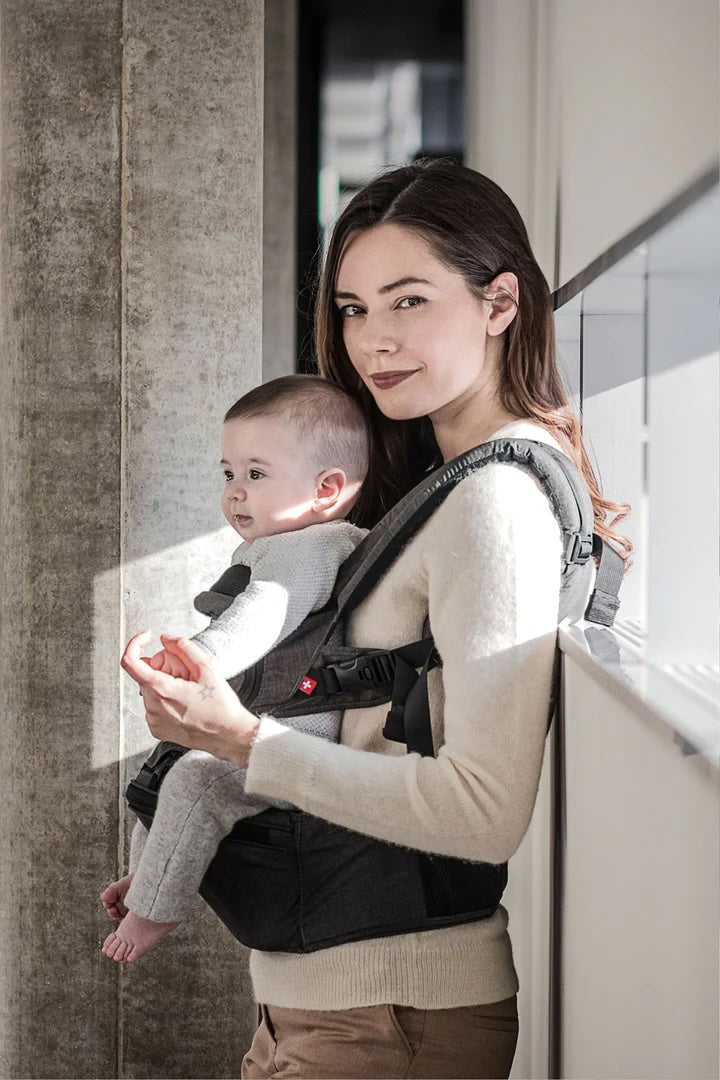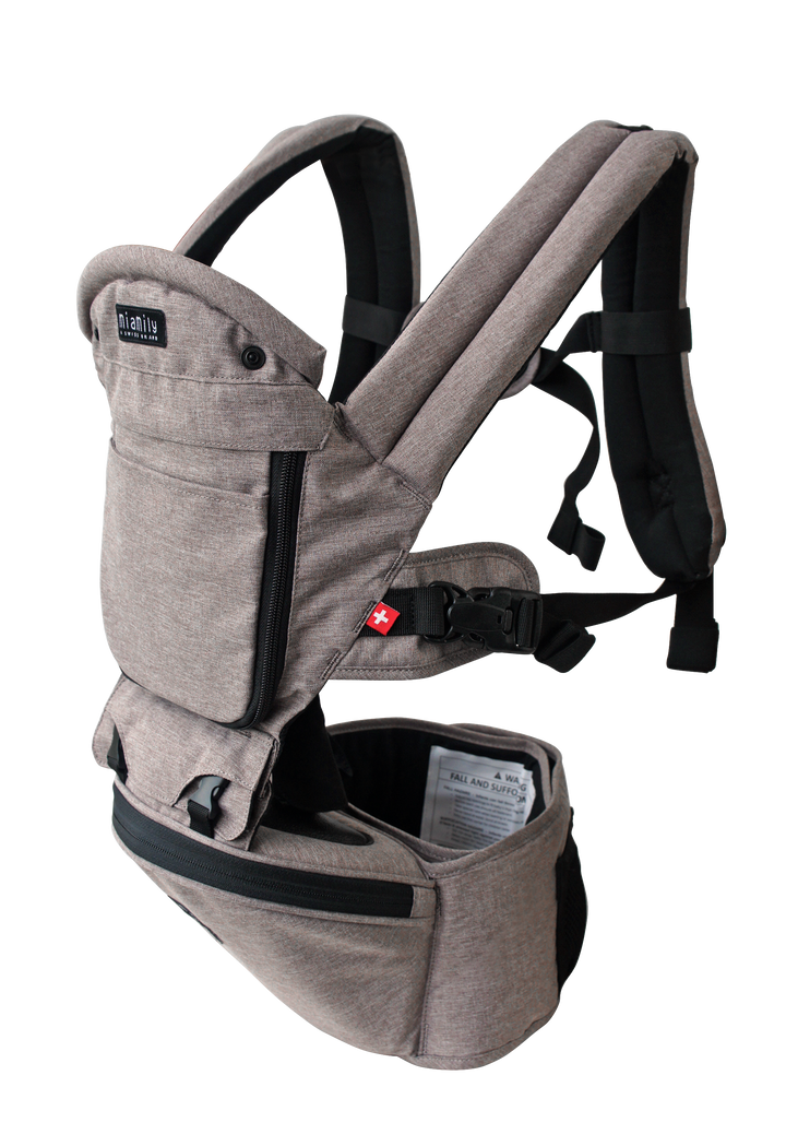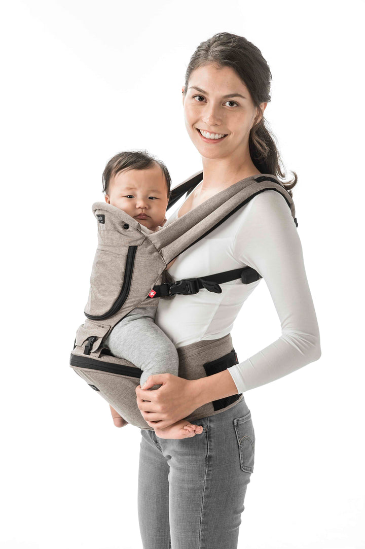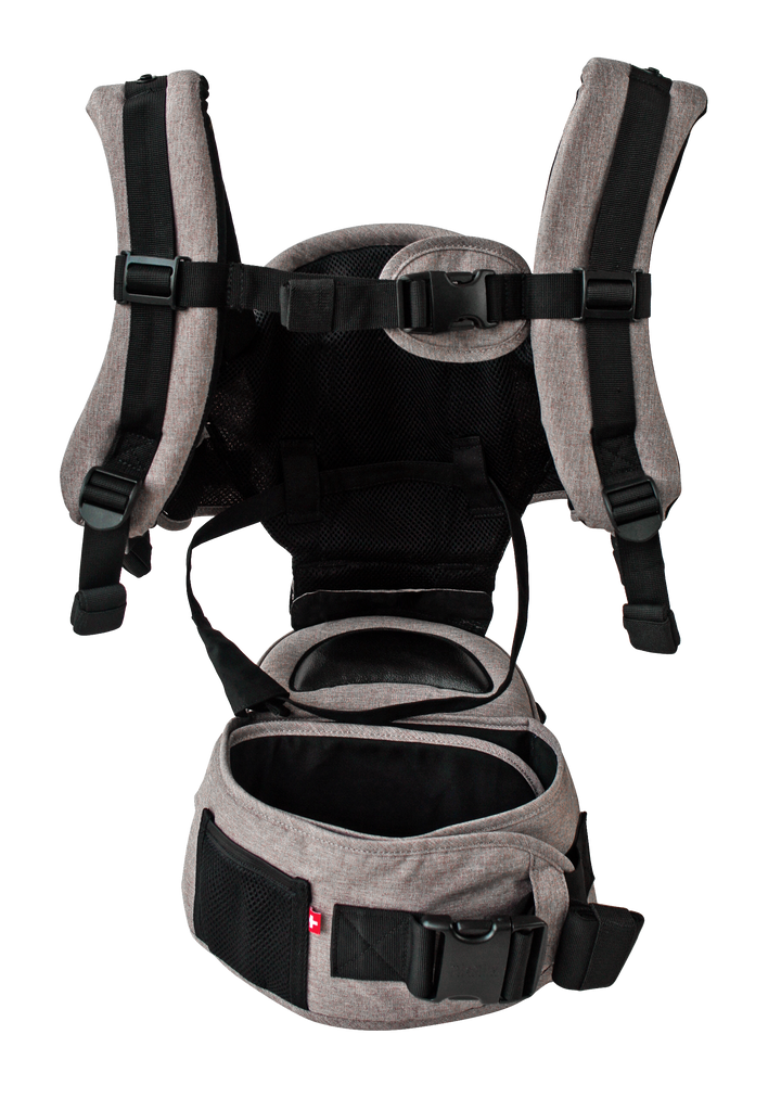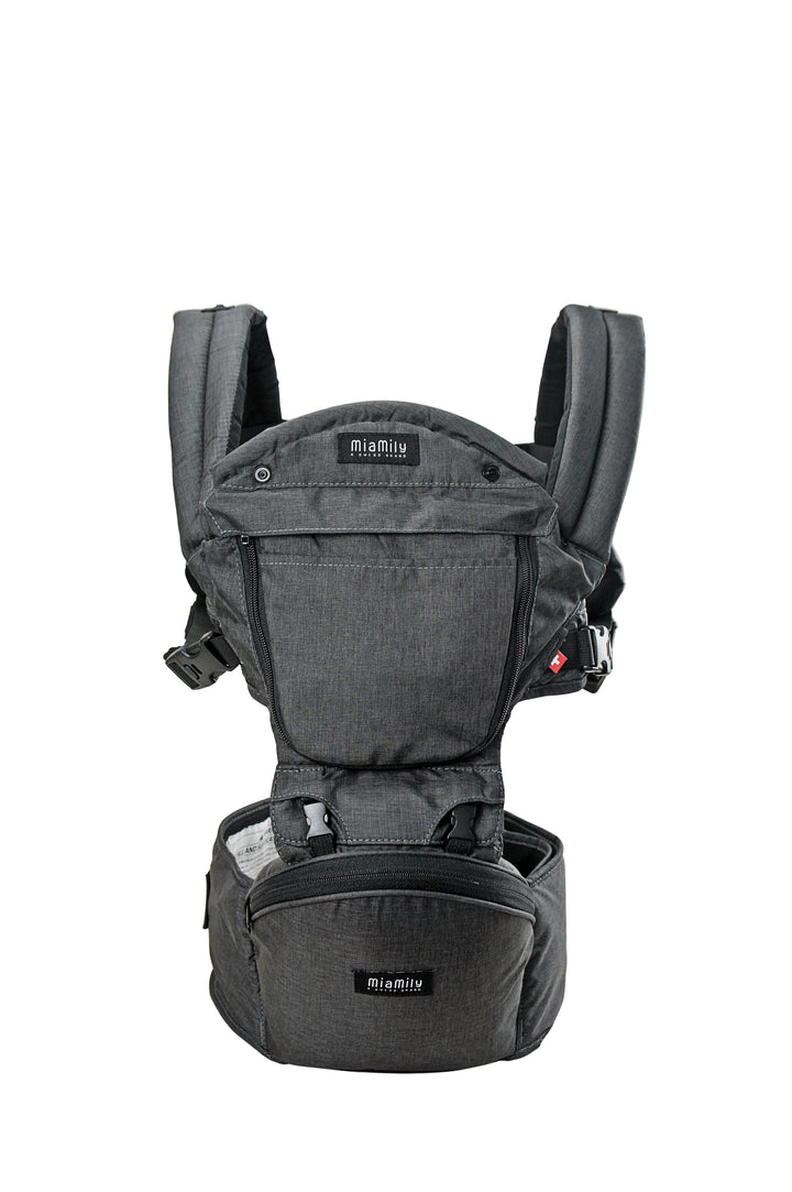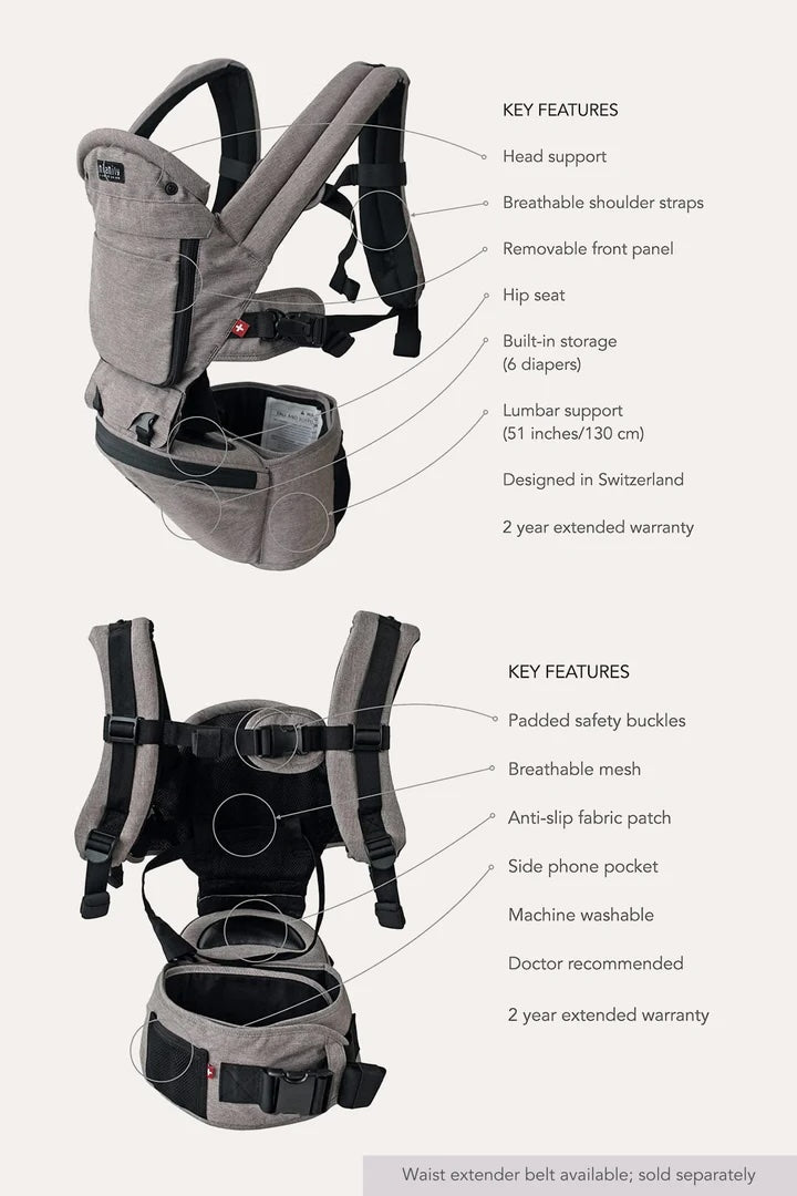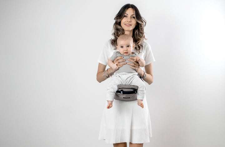 The ergonomic design of our innovative baby hip seat carrier ensures that your baby’s hips are always in the optimal “M” sitting position, with knees even at hip level. Parents' are kept comfortable, too, thanks to wide waistband providing full lumbar support. Offers 6 different carry options, multiple safety features and extra storage space for yours and your baby's essentials.