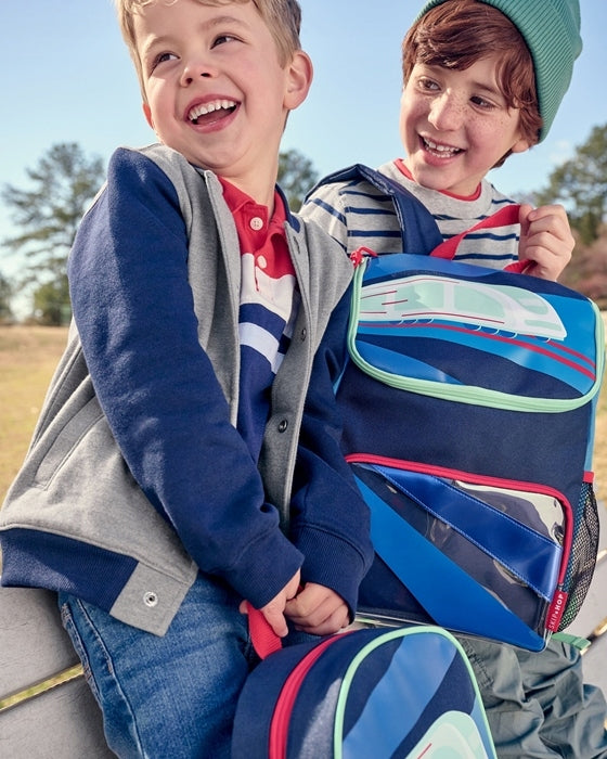 Let your little one’s personality shine with the Skip Hop Spark Style Backpack in the fun Train design! Perfectly sized for school essentials, it features a roomy main compartment that fits full-sized folders, a front pocket for snacks, and a mesh side pocket for a water bottle or juice box. With playful zipper charms and bold details, this backpack makes every day an adventure!