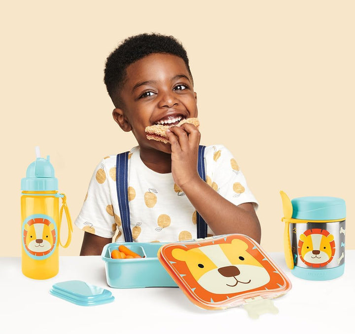 Keep meals fresh and ready with the Skip Hop Zoo insulated food jar featuring a fun lion design. Ideal for kids aged 3 and up, this stainless steel container keeps food warm for up to 7 hours or chilled for up to 5 hours. It includes a built-in utensil holder and a convenient spork (spoon + fork), making it perfect for meals on the go. Compact, colorful, and kid-friendly, it’s great for school, outings, and everyday snacking.