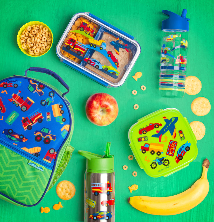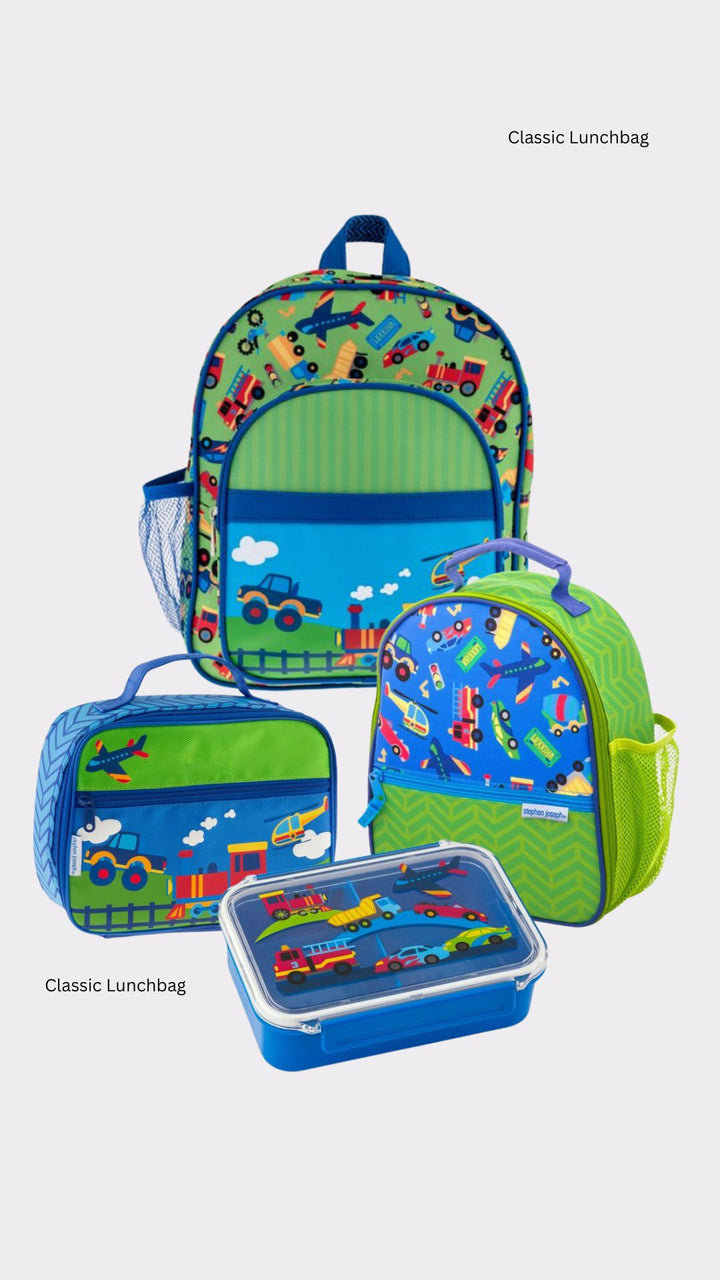 Kids will be “all over” the Stephen Joseph All Over Print Lunch bag. Perfectly sized for school age kids, these fun and functional lunch bags are not only well designed but durable. Large enough to carry your children’s lunch and snack needs for school or even a day trip or picnic. The All Over Print Lunch bag features a spacious insulated interior compartment, an outside storage pocket- perfect for mealtime accessories like utensils and napkins, an interior elastic and mesh pocket, and an exterior mesh water bottle holder. Be sure to gear up with the matching Stephen Joseph All Over Print Backpacks.