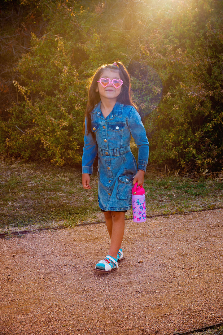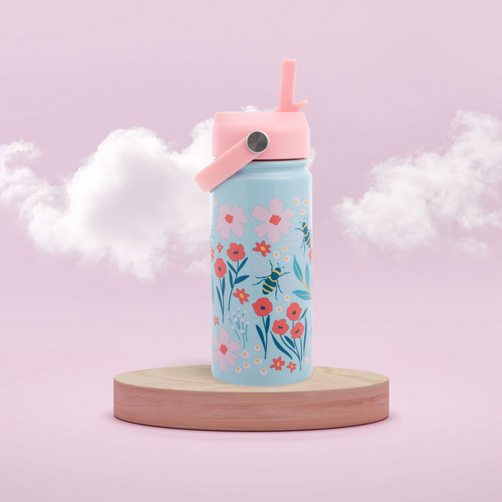 Keep your little ones drink at the perfect temperature for up to 6 hours with this adorable insulated stainless steel water bottle. The vacuum seal and leak proof lid make it perfect for on-the-go, and the pivoting handle and included straws make it easy for little hands to use.