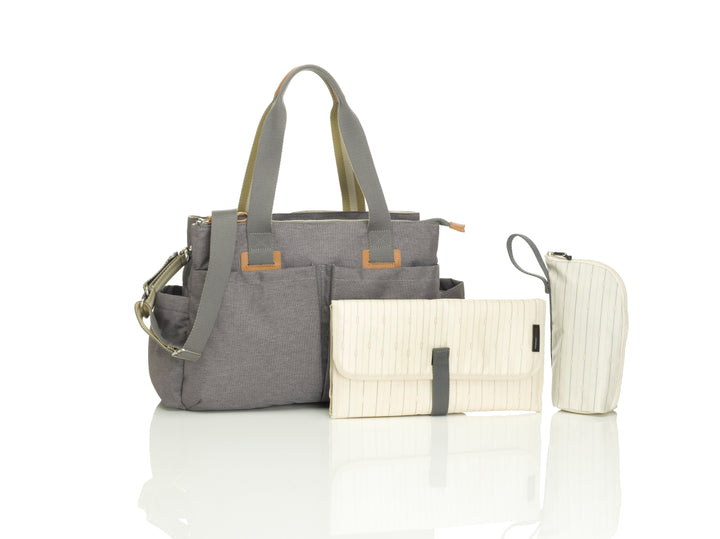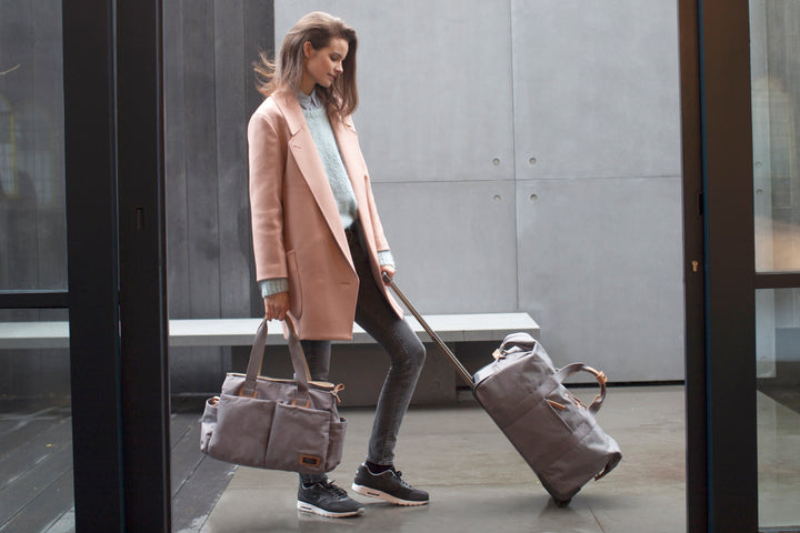 Pairing modern styling with ultimate function, the quintessential Travel Shoulder Diaper Changing Bag offers plenty of pockets and compartments for keeping you organised on the move.Super lightweight, featuring our zipped bottle holder, a laminated fold-out changing mat and back pocket for attaching to our Cabin wheeled travel bag.